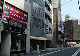 ●ファミリーマートを右に曲がり、少し進んで左側を見上げると窓に教室の看板が見えます。